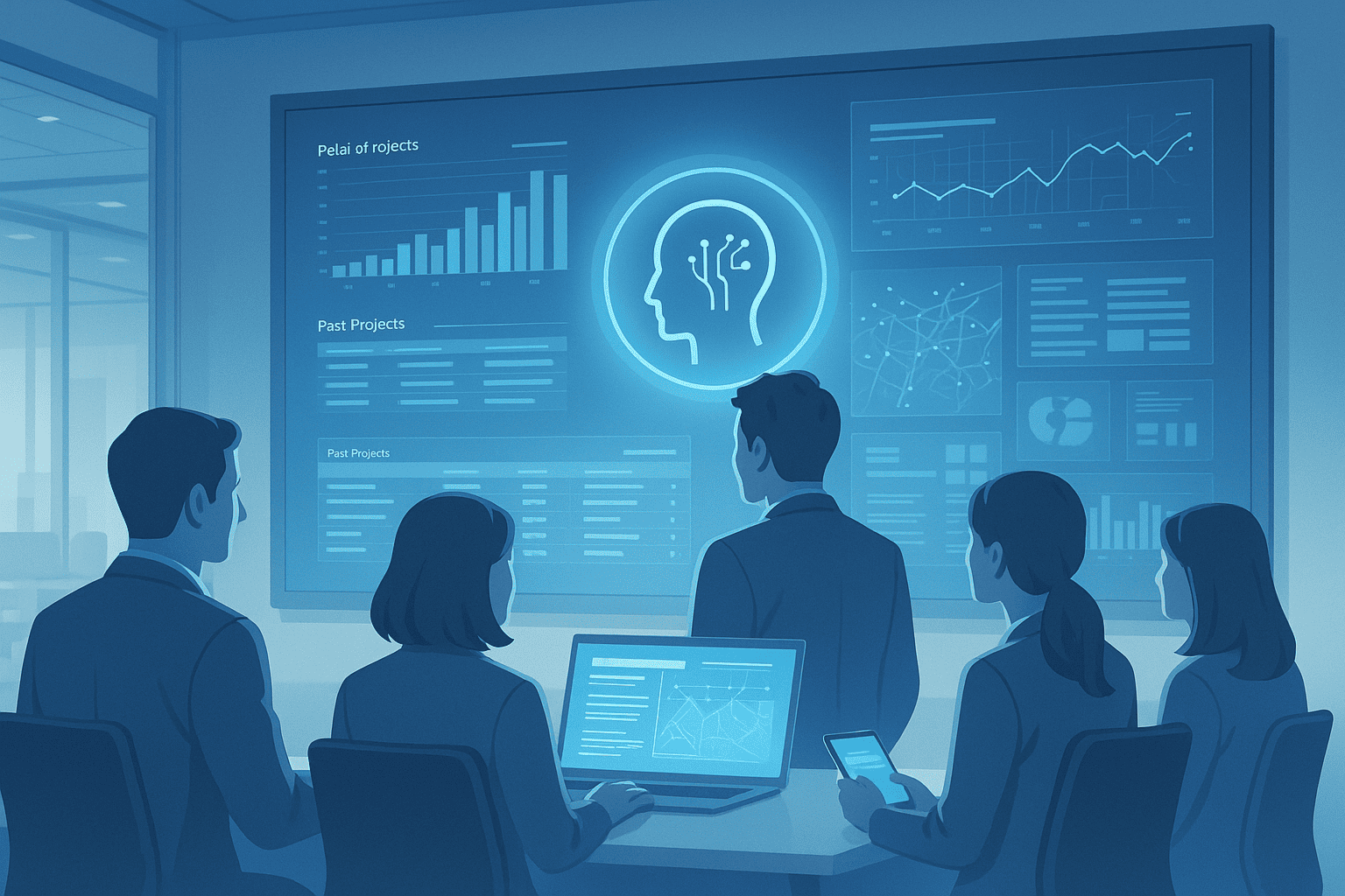 AIを社内専用環境に導入すれば、過去の案件・資料・メールを横断的に検索できるナレッジAIになる。